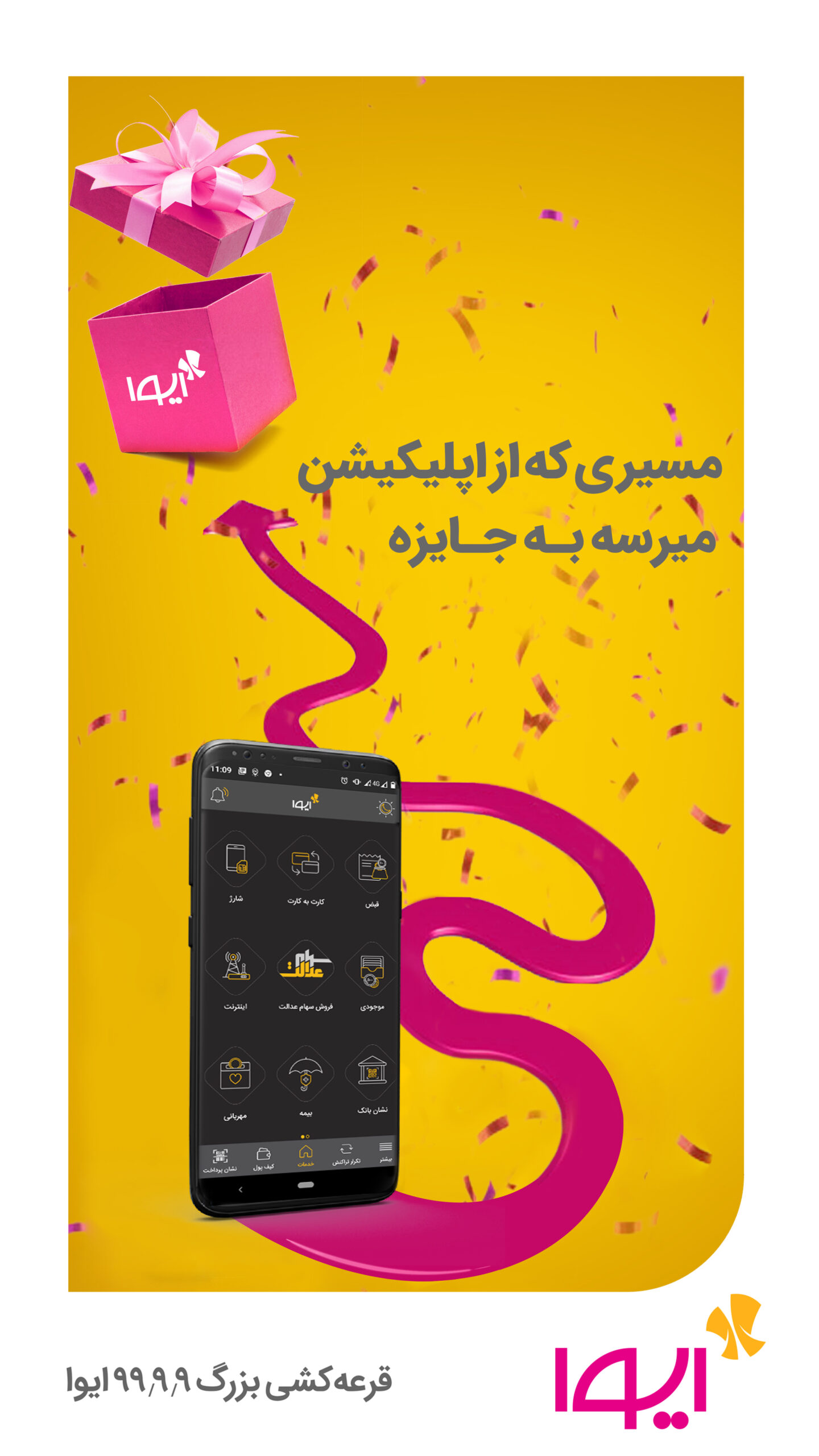 ایوا یک اپلیکیشن پرداخت است که از طریق آن میتوانید به خدمات متنوعی مانند خرید شارژ و بسته های اینترنت تلفن همراه، انجام کارت به کارت، دریافت موجودی تمام کارتهای بانکی، استعلام و پرداخت کلیه قبوض (برق، گاز، تلفن همراه، تلفن ثابت و آب)، استعلام و پرداخت جریمههای خودرو و بسیاری سرویس های متنوع دیگر دسترسی پیدا کنید.